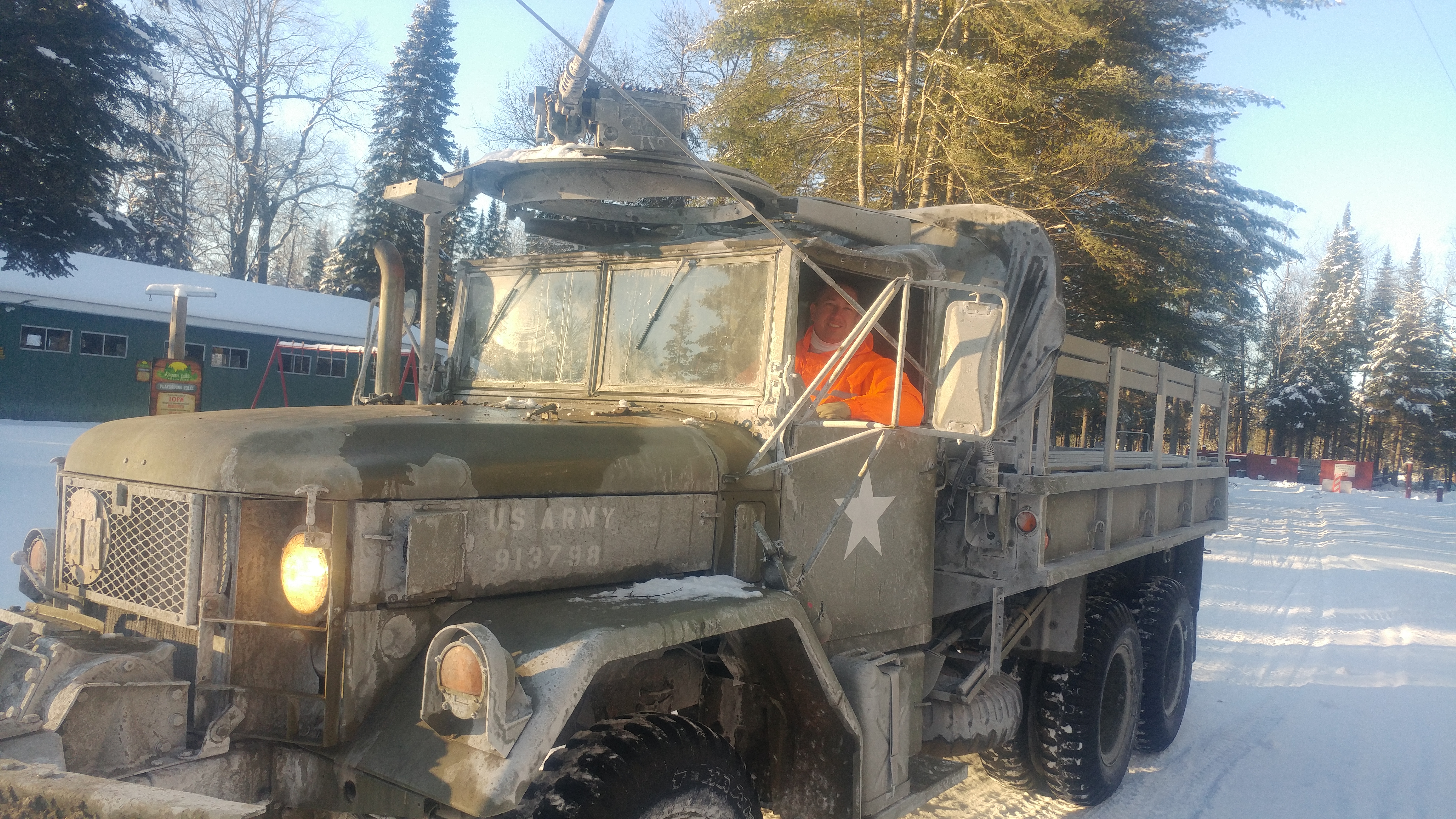 Somewhere I have a picture of my spouse driving this thing, the manual transmision is not a problem, but the lack of power steering...